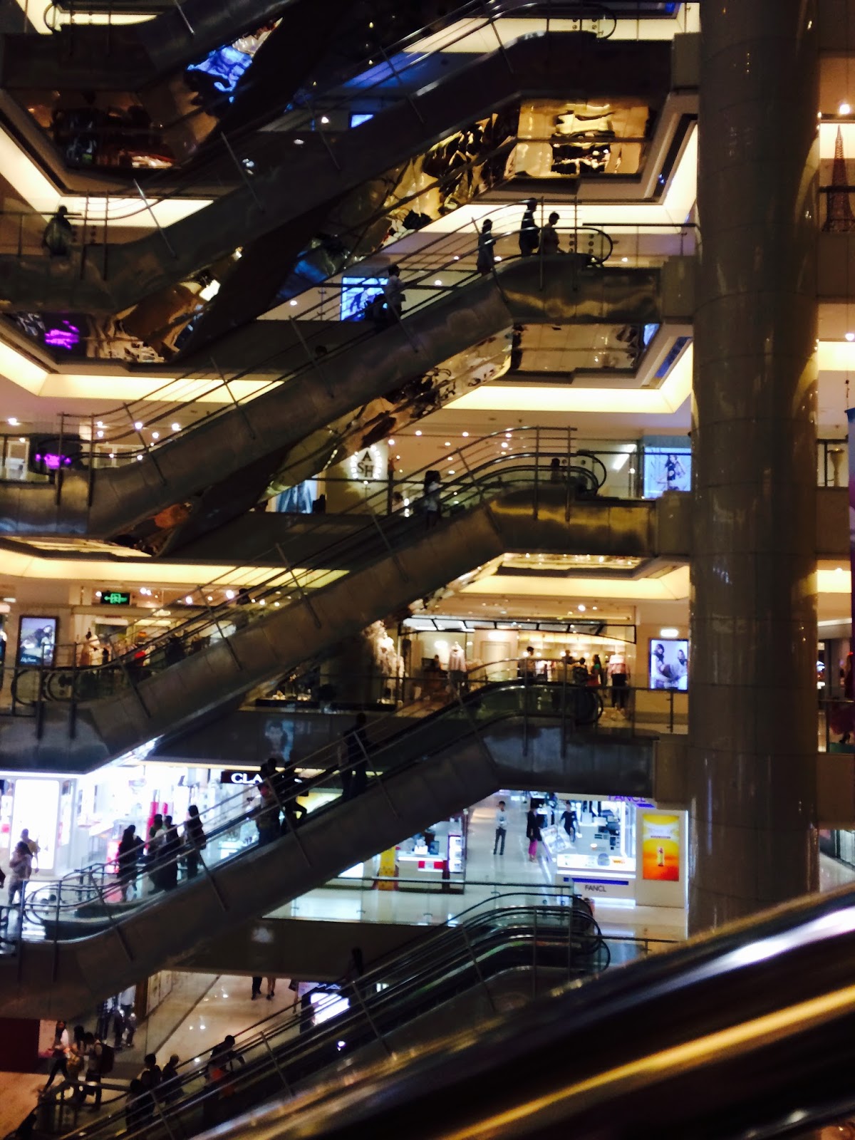 Later in the evening, we ventured out for good ole American food - McDonalds. It's located on the bottom floor of this huge mall. Before we got there, we decided to check out the electronics department for a new camera. The shutter on my old one does not open fully without assistance anymore. You may have noticed some strange cropping as a result. This mall has eight floors and is simply massive.